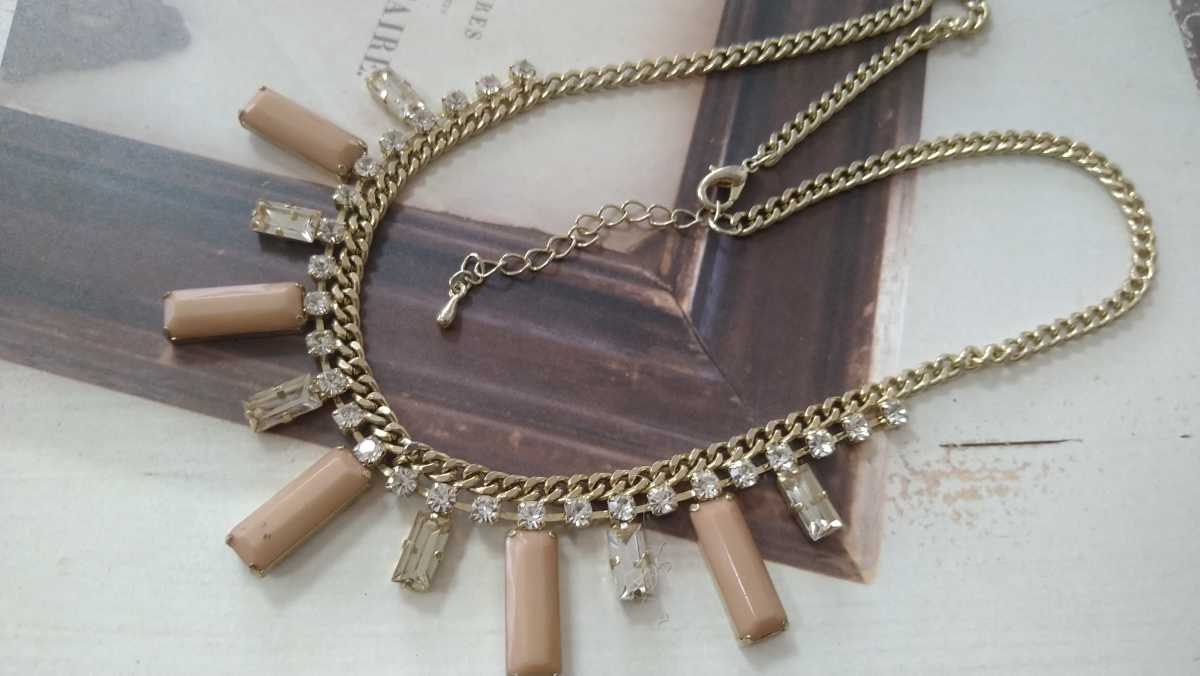 - □ピンクベージュ×クリア×ゴールドカラーチェーン・ネックレス□