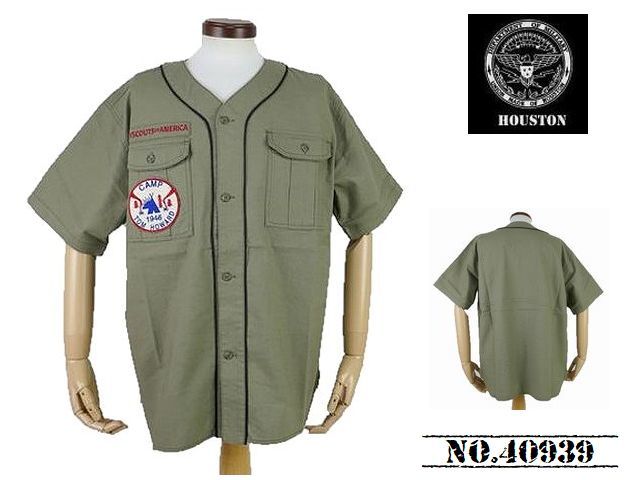 > 【送料無料 40%OFF】HOUSTON ヒューストン ワイド ボーイスカウトシャツ ベースボールシャツ NO.40939 OLIVE DRAB_Lサイズ