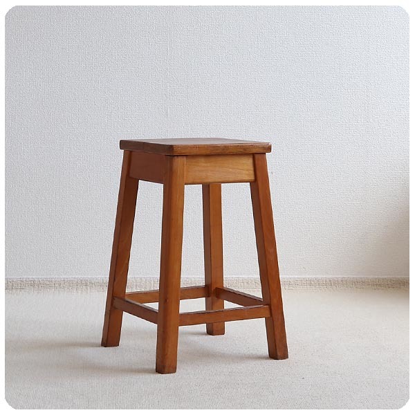 - イギリス ヴィンテージ ウッドスツール/家具/木製椅子/店舗什器/カントリー/アンティーク/アトリエ/学校【飾り台にも】T-421