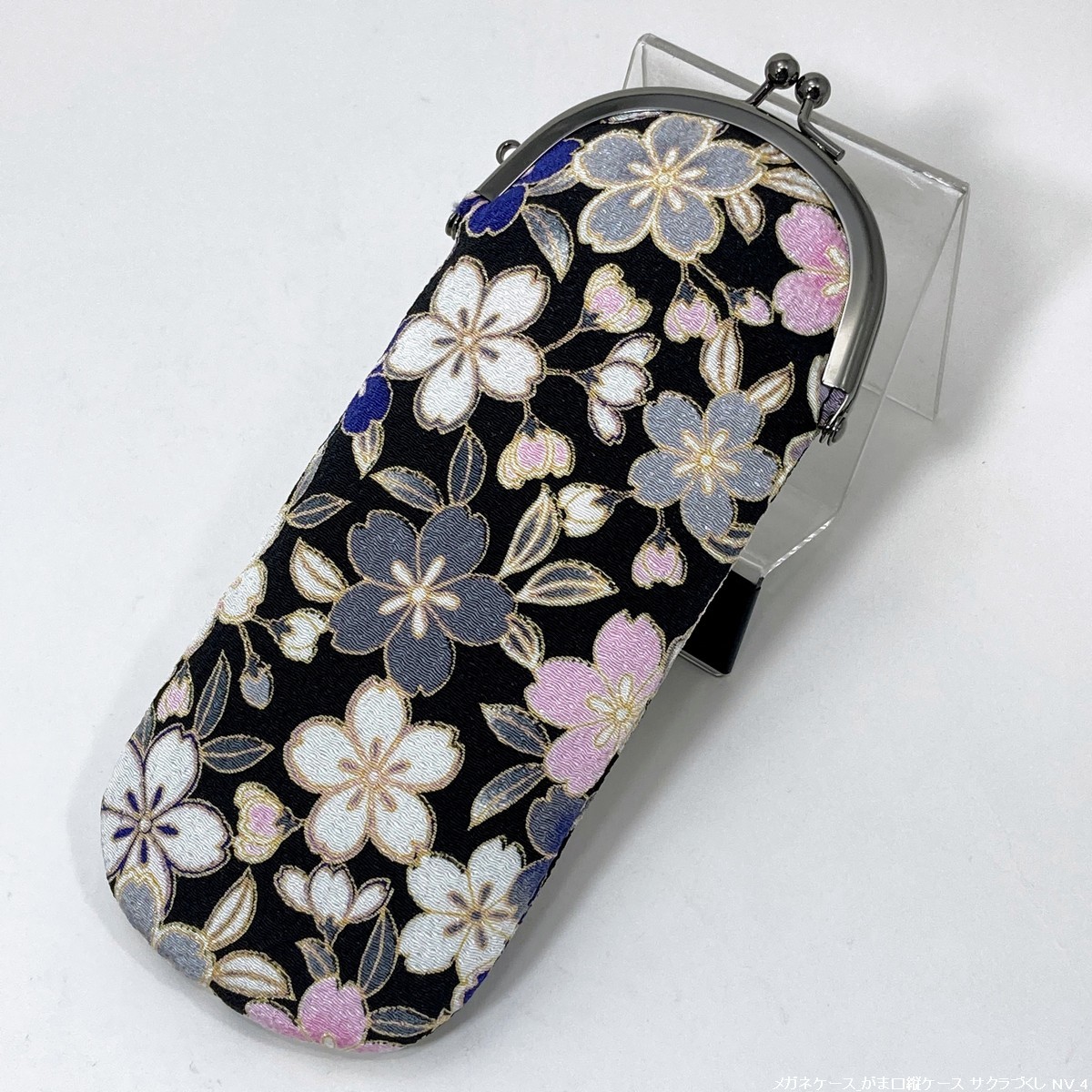 - 【新品/即決/送料185円】メガネケース 眼鏡収納 小紋工房 縮緬 スリム コンパクト がま口 ソフトタイプ 和柄 和風 桜 紺 20804-6