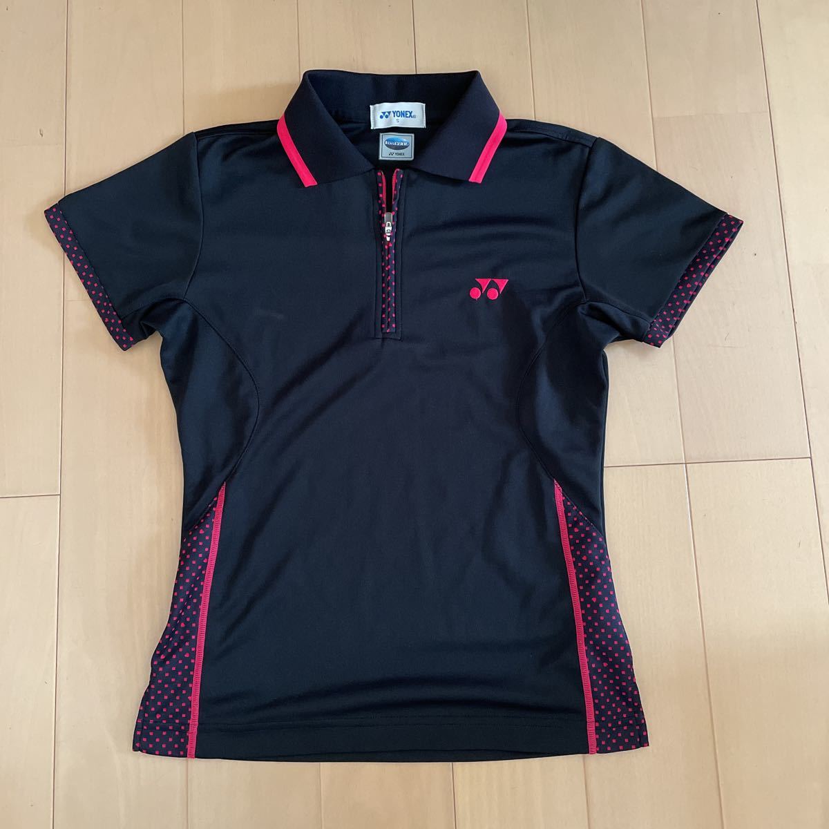 - 送料込み YONEX ヨネックス 襟付きシャツ 半袖 サイズS 黒×ピンク水玉 ブラック 送料無料