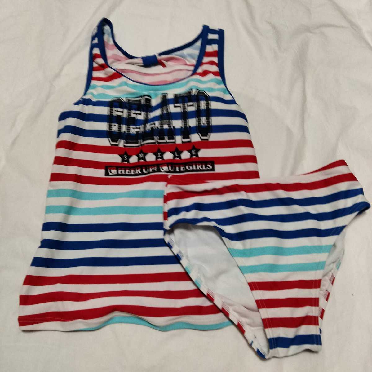 - キッズ水着 150 セパレートタイプ トリコロールカラーストライプ柄 女の子 子ども 220806