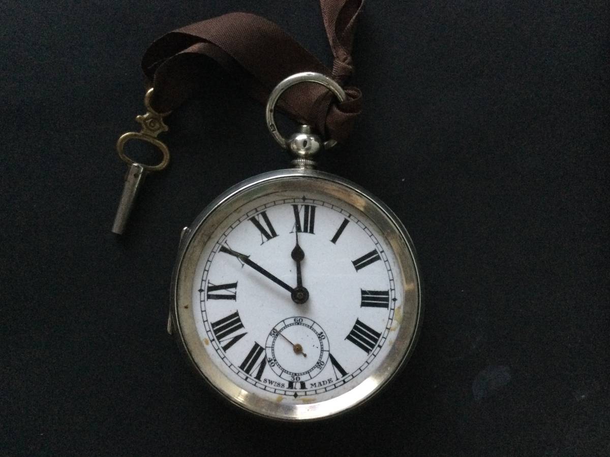 - コレクション処分 重厚100g以上 スイス製シルバー935 鍵巻き式 紳士用懐中時計 稼働品 デスクの装飾に!