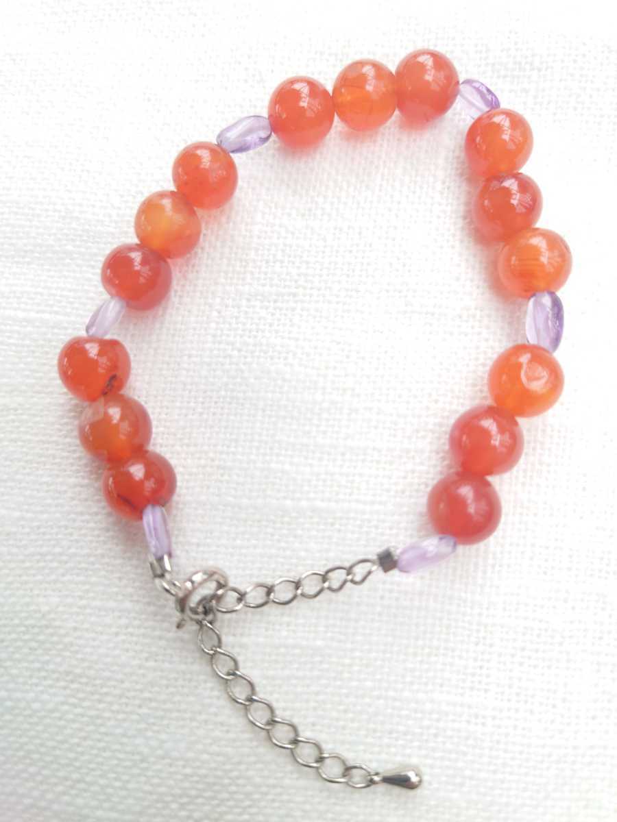 - ブレスレット メノウ レッド 天然石 アメジスト パワーストーン 手作りオリジナルデザイン アジャスター付 誕生石 8月