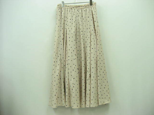 > BLANC basque ブランバスク フレア スカート ロング ドット 水玉 ベージュ×ブラック 黒 サイズ36