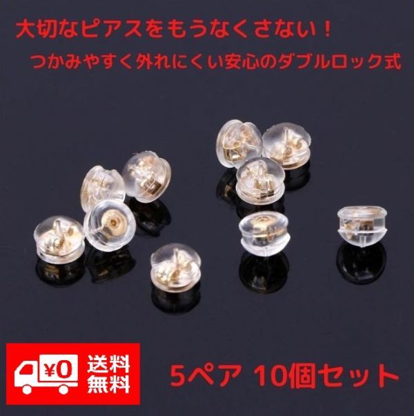 - 金属アレルギー対応 K14 イエローゴールド ピアス キャッチ つかみやすく外れにくい安心のダブルロック式 5ペア 10個 Z113!送料無料!