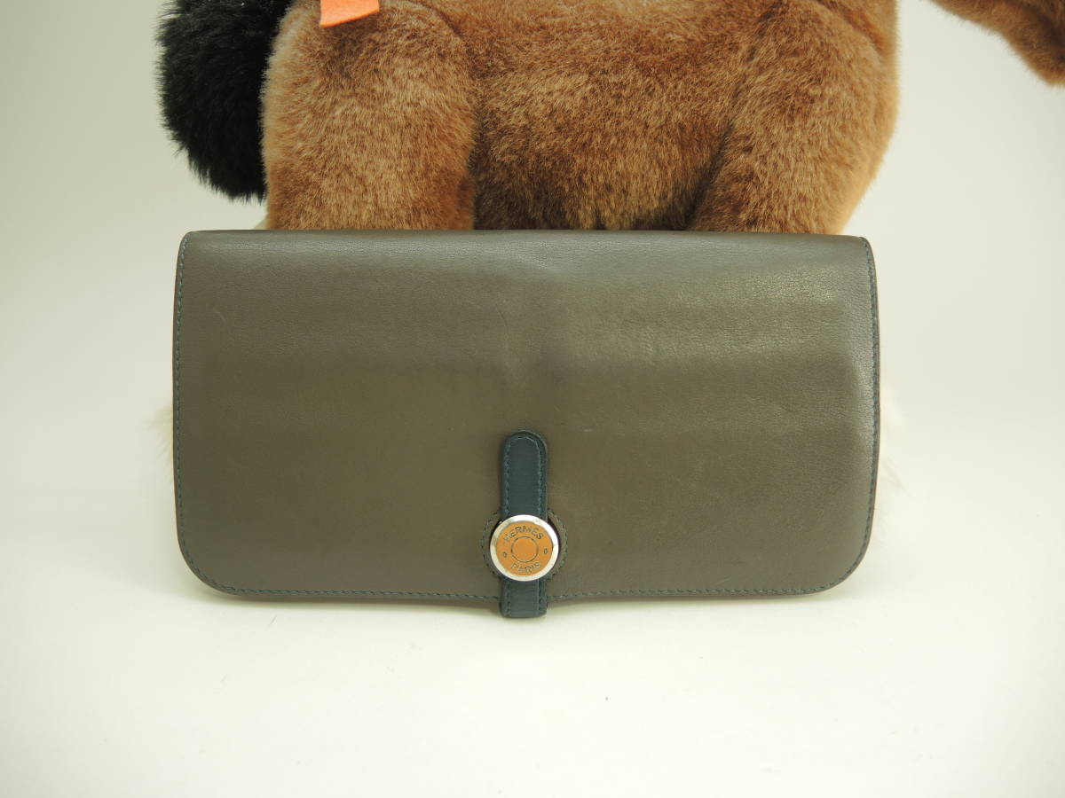 - エルメス ドゴンロング スイフト グラファイト青 2折長財布 ロングウォレット@□P