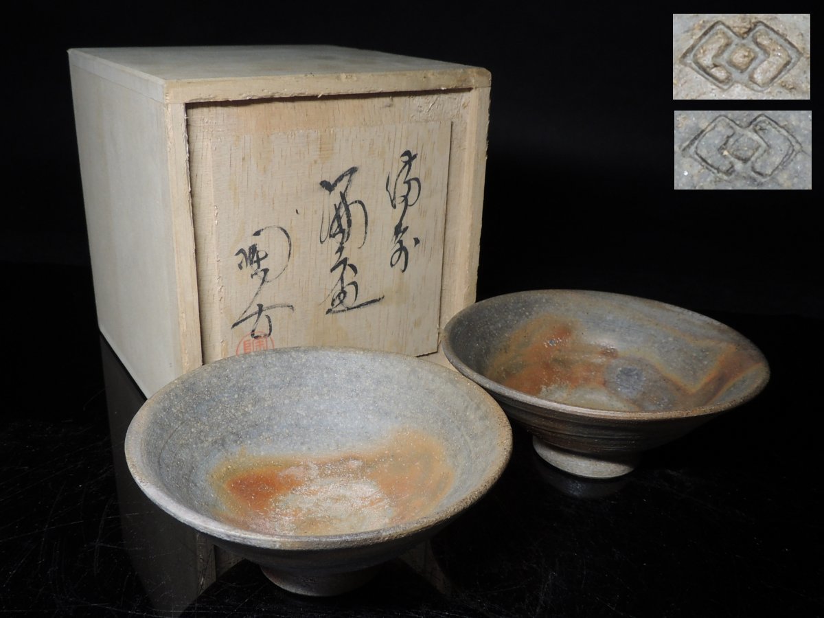 - ◆備前・小西陶古・酒盃・2客・一対・栞・共箱・酒器◆a947