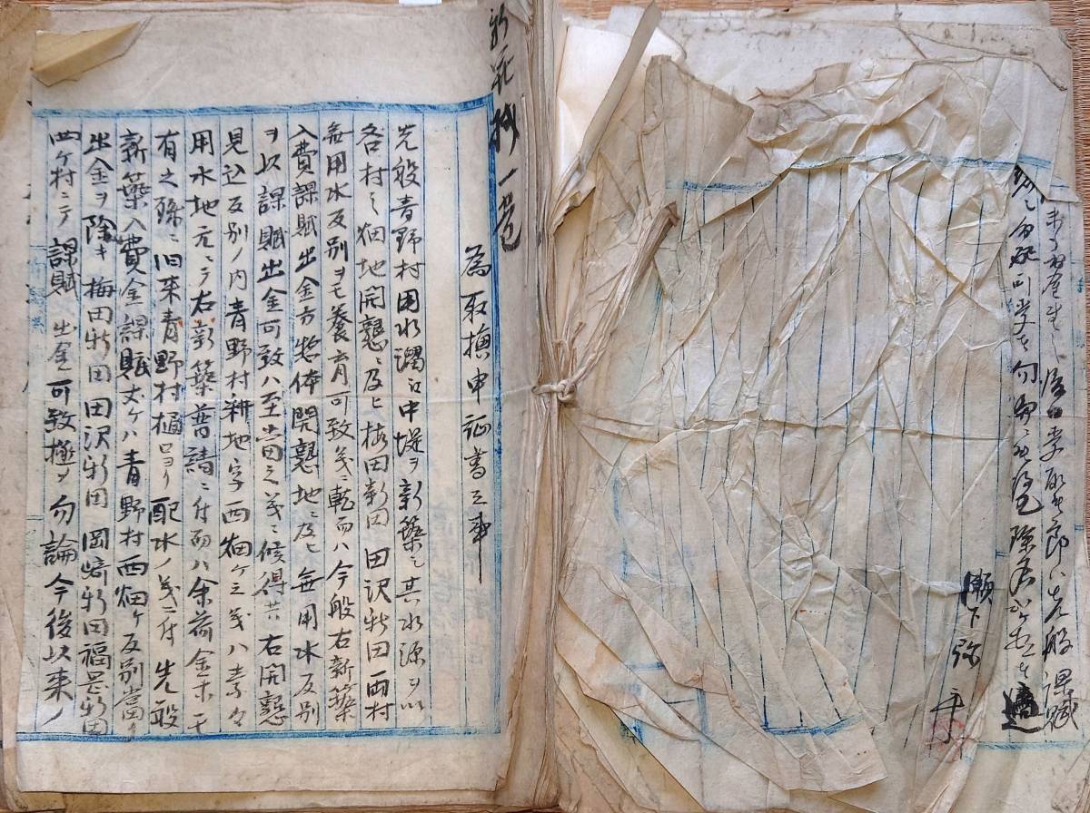 - f22090501〇古文書 新潟県 青野村 用水溜為取替申証書之事 中頚城郡福岡新田 絵図入 新築目論見概算帳〇和本古書古文書