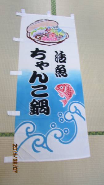 - (レトロなのれん旗・活魚ちゃんこ鍋)