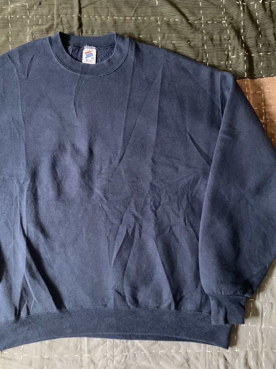 - 90s XL JERZEES vintage スウェット 無地 navy 紺 USA製 アメリカ製 ジャージーズ ビンスエ