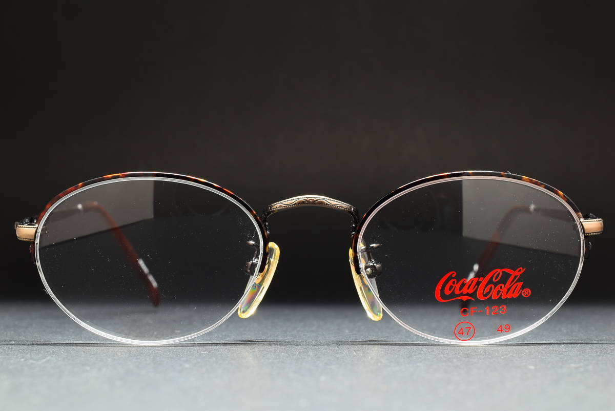 > デッドストック Coca Cola CF-123 47-20 オーバル ナイロール メガネ サングラス フレーム 彫金模様 日本製 ヴィンテージ コカコーラ