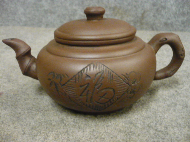 - 【政】31277 朱泥急須 銘有り 煎茶器 抹茶 番茶 茶道具