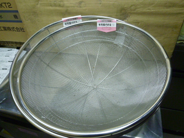 - E200121K@未使用●ステンレス半月揚げザル2ヶ 45cm・48cm●K9