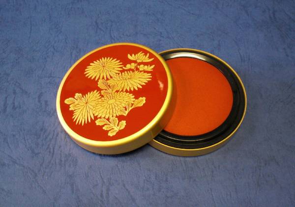 - 24金パールメッキ・高級感抜群の朱肉。菊(赤)