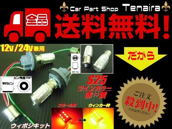> 改良型 無極性S25 ピン角度150°ダブル球付 赤⇔黄 ツインカラーLEDウィンカーポジションキット ウィポジ メール便送料無料/7