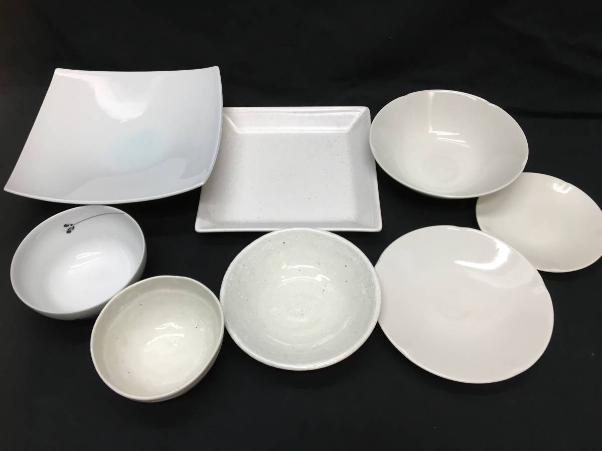 > 展示品 77★ 未使用 ★業務用食器 白い食器(白系) 角皿/高台反角皿/小皿/小鉢 いろいろまとめて8枚 日本製