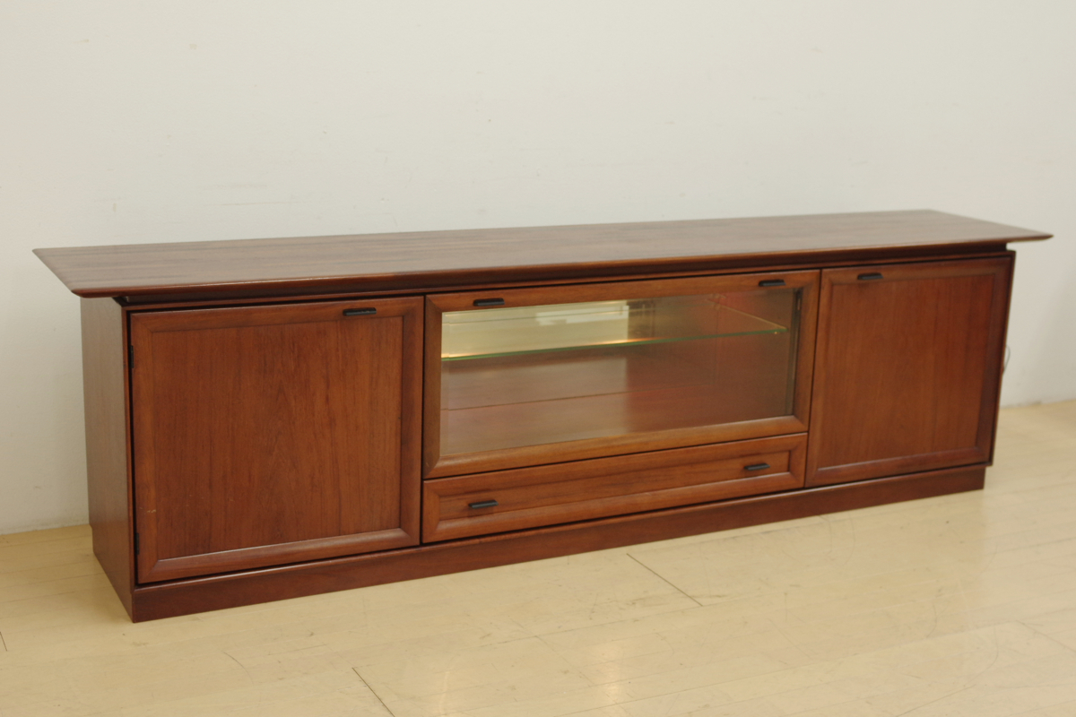 - カリモク最高級 ビベンテ 花梨 無垢 サイドボード 飾り棚 キャビネット ミラーバック ディスプレイケース 照明付 リビング 応接 役員