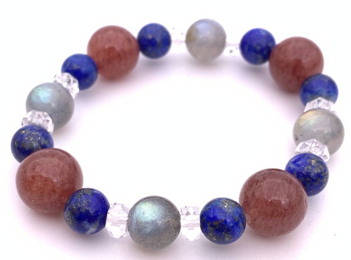 - 天然石ラブラドライト&ラピスラズリ&ストロベリークォーツのブレスレット