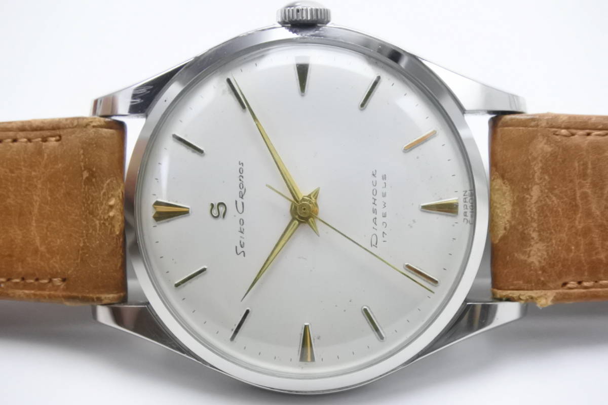 - 時司神「クロノス」*1950年代 SEIKO CRONOS Sマーク 17石 手巻き紳士腕時計 純正SEIKOベルト 美品