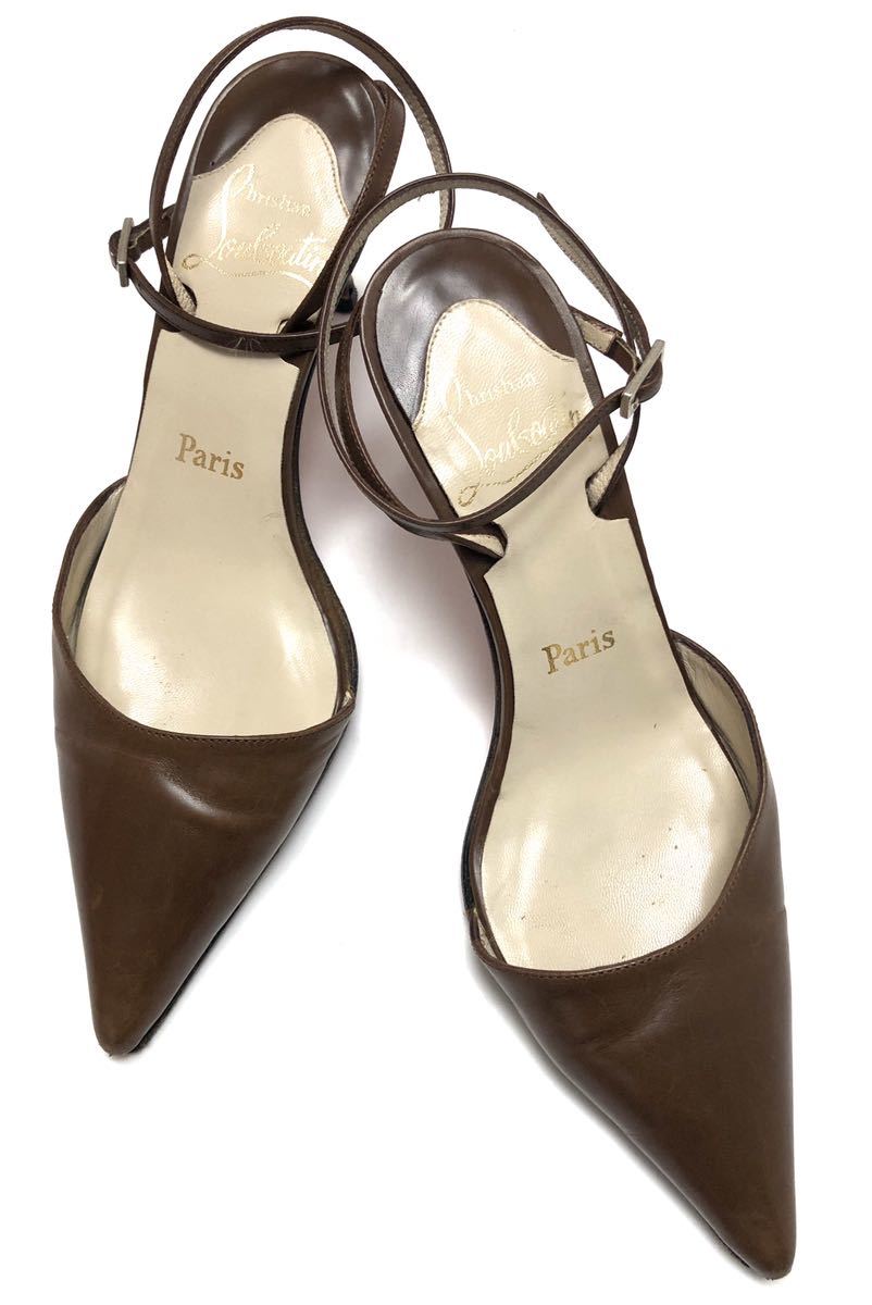 > ☆二点落札で送料無料!2A45 伊製!Christian Louboutin クリスチャン ルブタン使い勝手抜群のブラウン サンダル!サイズ35 オンオフ問わず