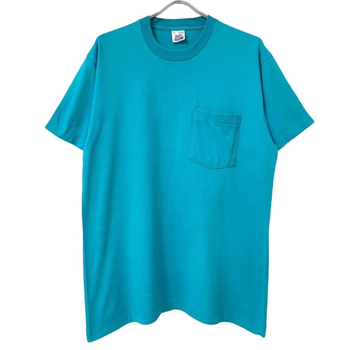 > ■激レア■90s USA製 BVD ターコイズ 無地 ポケT Tシャツ L フルーツオブザルーム HANES ヘインズ TULTEX ビンテージ