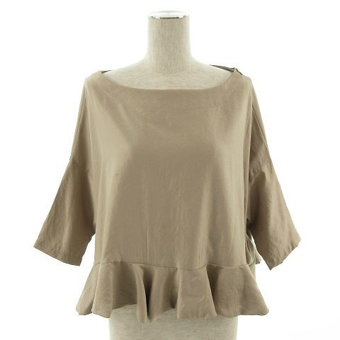 - シップス SHIPS カットソー 七分袖 裾フリル ベージュ レディース