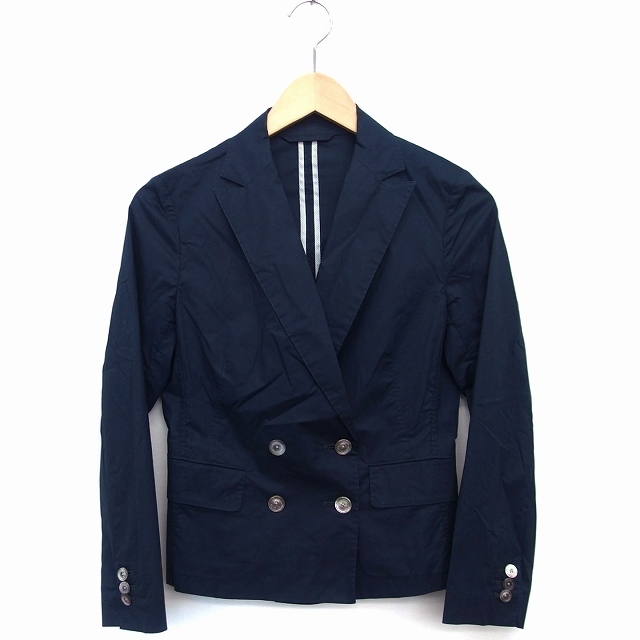 > トゥモローランドコレクション TOMORROWLAND collection テーラード ジャケット ダブル 綿 無地 薄手 38 ブラック 黒 /HT8 レディース