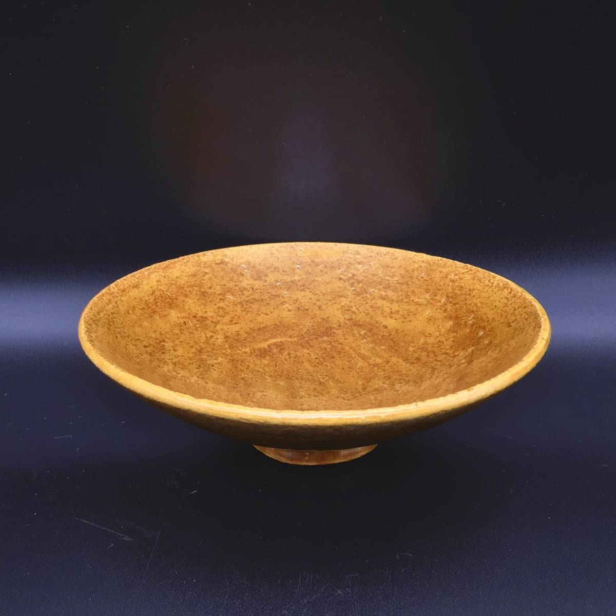 - ◆◇通次阿山 黄釉平茶碗 茶道具 京焼 茶碗 平茶碗◇◆