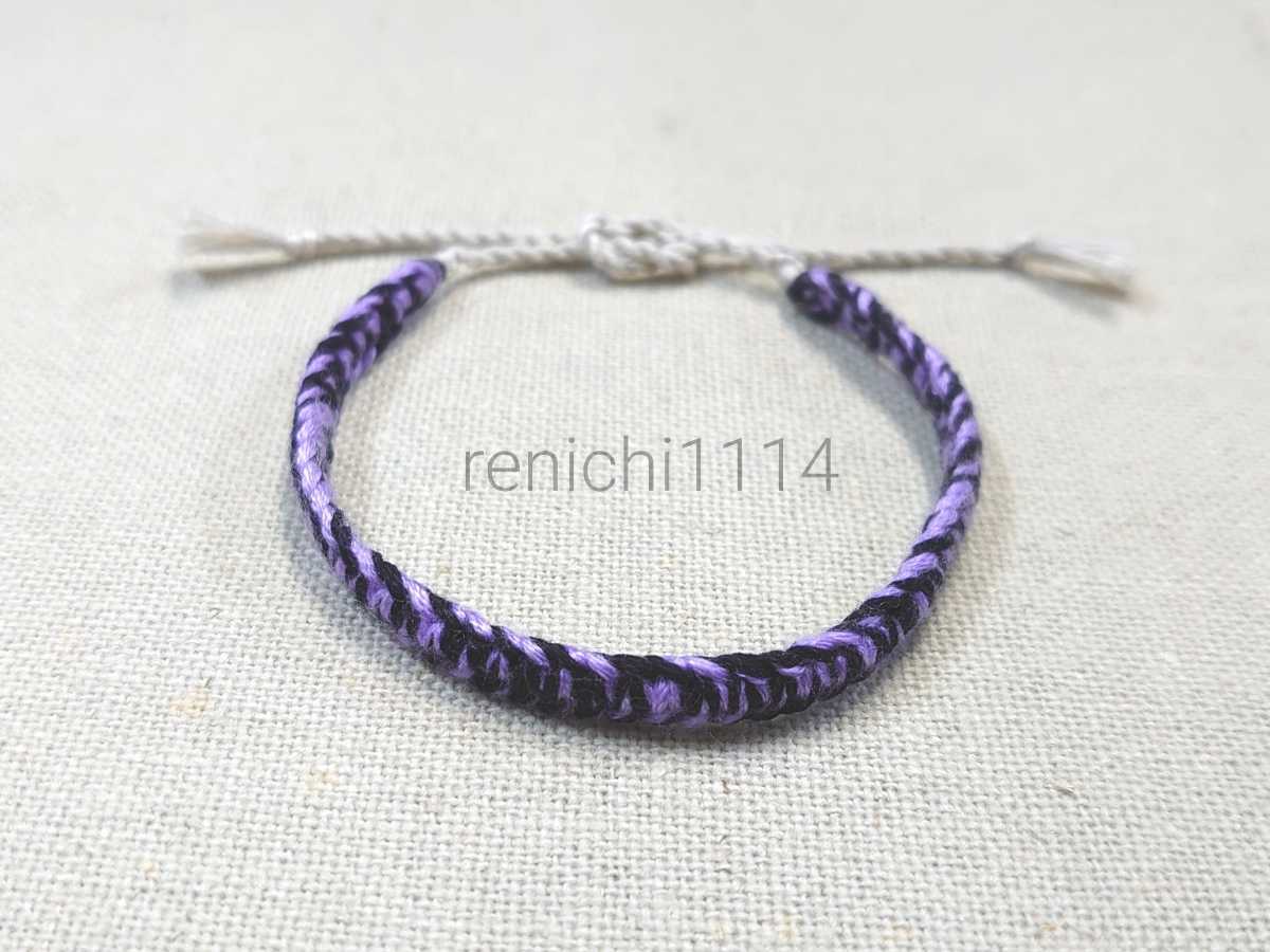 - ミサンガ☆黒紫&クリーム色☆ブレスレット☆アンクレット