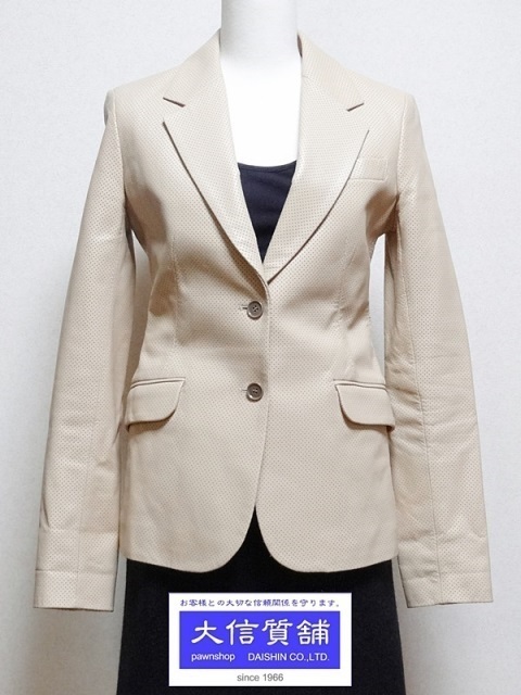 > THEORY セオリー パンチング ラムスキン ジャケット サイズ2 ベージュ 中古B+【送料無料】A-6110