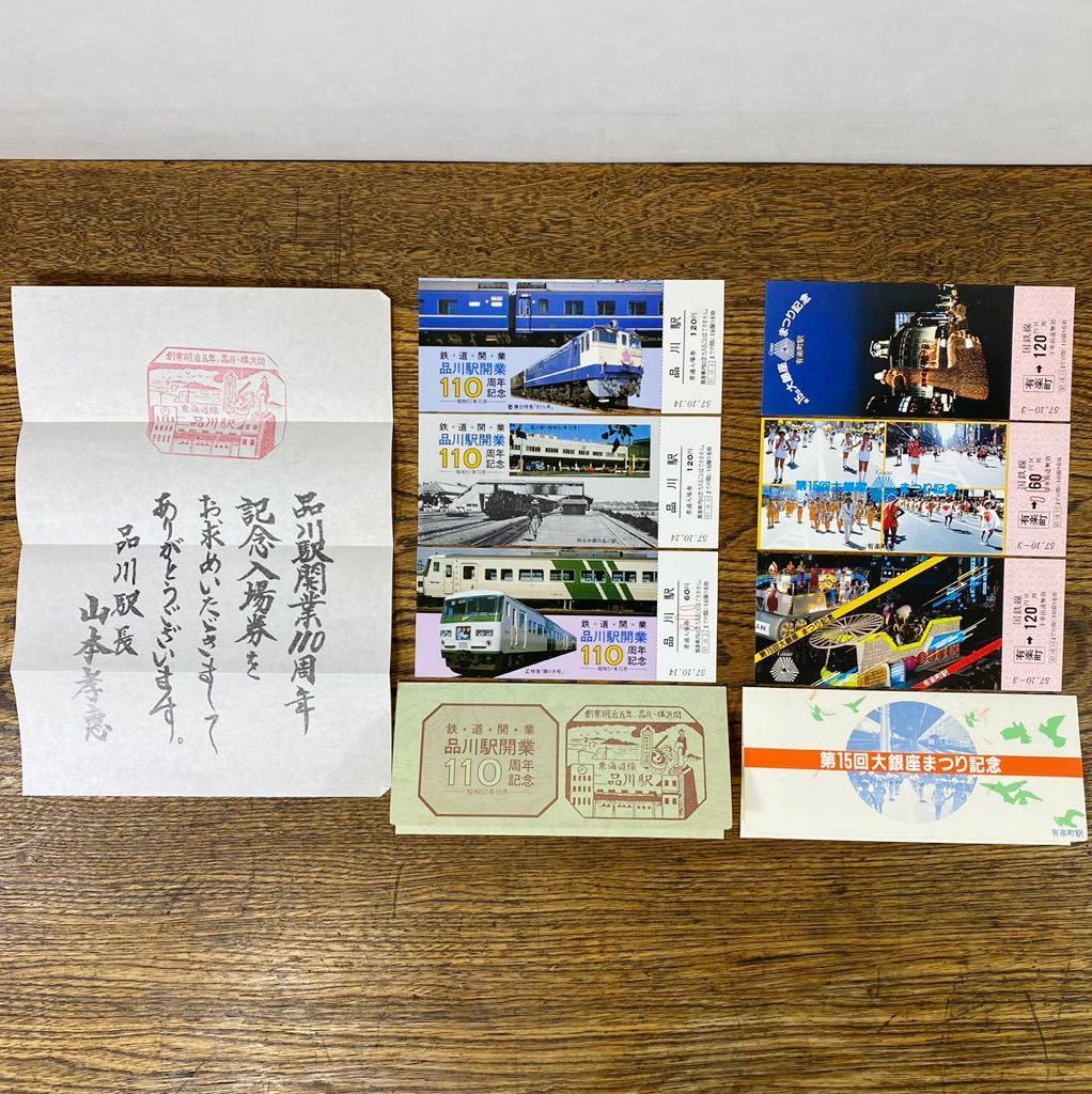 > 6枚 国鉄 鉄道 紙 切符 昭和57〜 乗車券 入場券 品川駅開業110周年 第15回大銀座まつり 記念 列車 当時物 関東地方 レトロ 古い