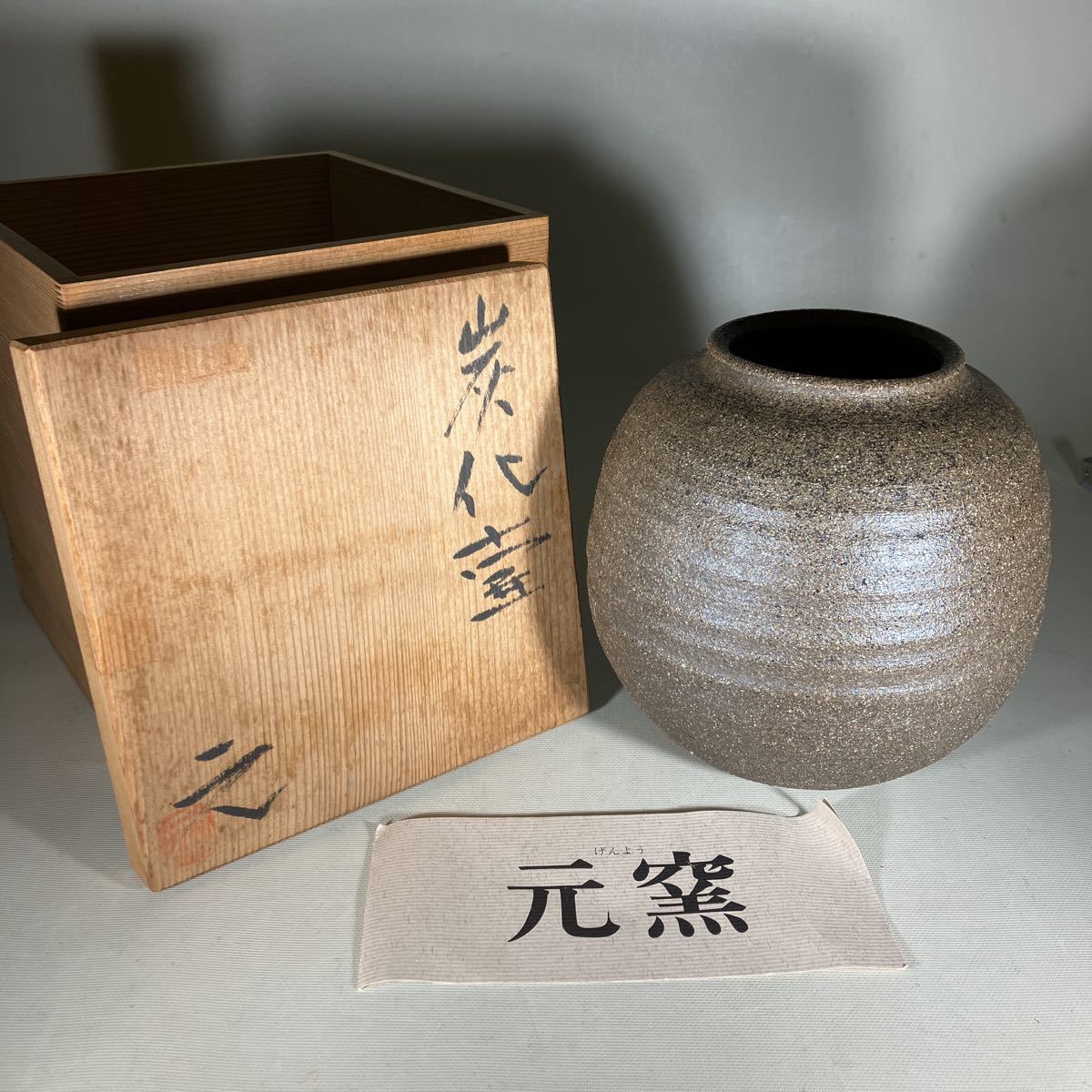 - 高鶴元造 炭化壺 渋味の極致 共箱 八八八