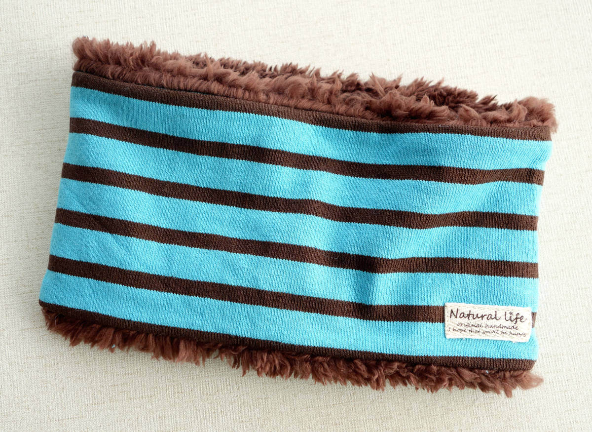 - ★ ハンドメイド ミントブルーのボーダー柄ネックウォーマー キッズ 小サイズ かぶりタイプ ★