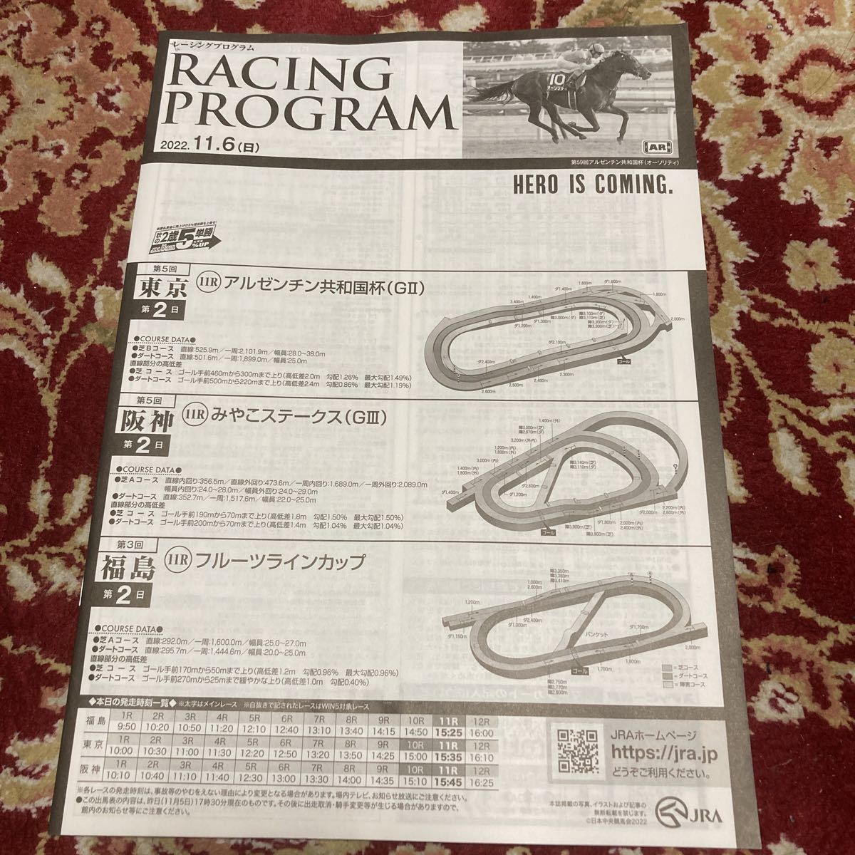 - JRAレーシングプログラム2022.11.6(日)アルゼンチン共和国杯(GⅡ)、みやこステークス(GⅢ)、フルーツラインカップ