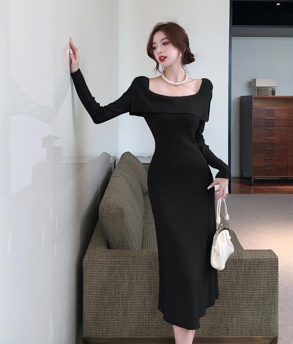 - cjx1821★ワンピースレディース●20代30代40代 オフィス 着心地抜群 発表会ドレス● 極美品 長袖 ニット素材 黒