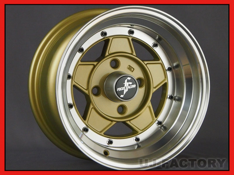 - 【送料無料/即納!】★復刻 フォーカスレーシングFIVE(ファイブ)アルミホイール・ゴールド★14inch(14インチ)9Jx2本(9.0J)/PCD:114.3/4H