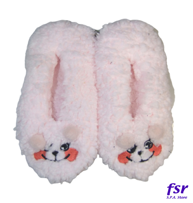 - ボアルームシューズ スリッパ レディースもこもこあったか 内側ボア 防寒 軽量 滑り止め付き かわいいくまの刺繍付き ピンク SLP-9052-PK