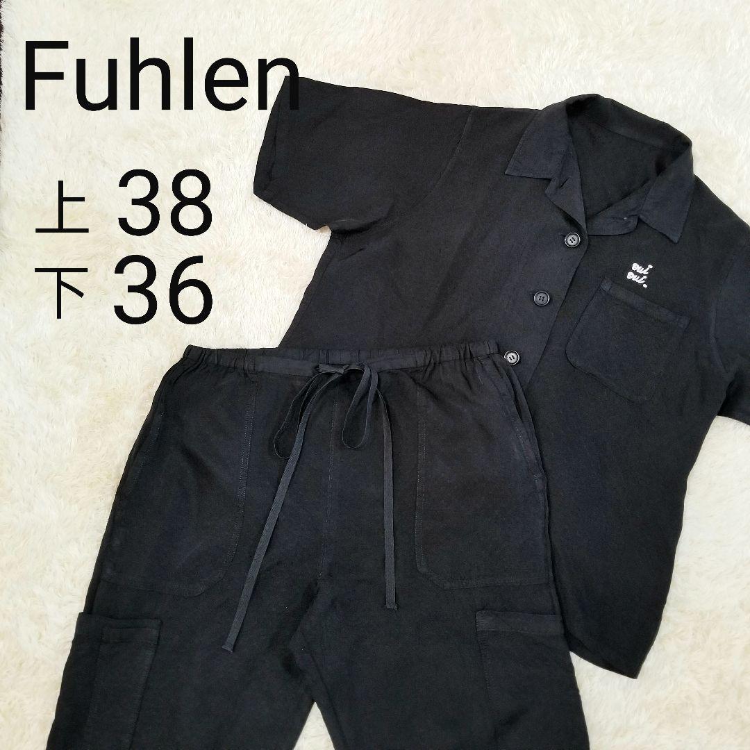 > YT003 Fuhlen フューレン シャツ ワイドパンツ 上下 2点セット 黒 ブラック レディース M S 半袖 春夏 楽ちん リラックス 部屋着 ゆったり
