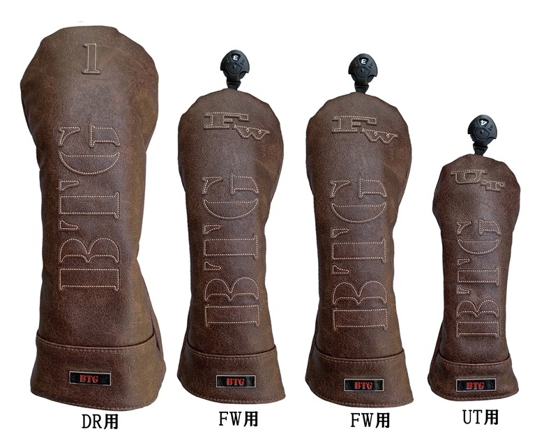 > ●オークション♪【4P-BR】ブルーティーゴルフ 【BIG BTG - Classic:ブラウン】4本セットヘッドカバーBLUE TEE GOLF 送料無料