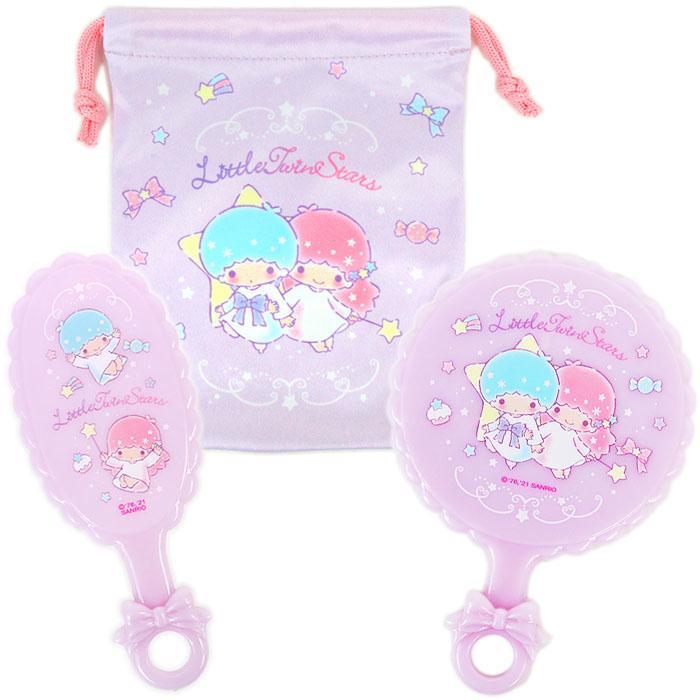 - リトルツインスターズ キキララ ミラー&ブラシセット 巾着袋付き 手鏡 ヘアブラシ キッズ 子供 女の子 サンリオ sanrio