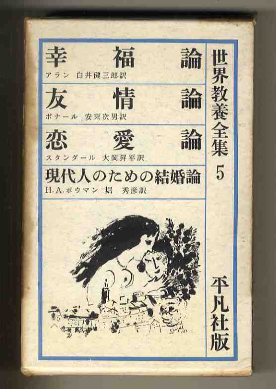 書名/著者: [世界教養全集5]幸福論/アラン、友情論/ボナール、恋愛論/スタンダール、現代人のための結婚論/H.A.ボウマン (平凡社版)