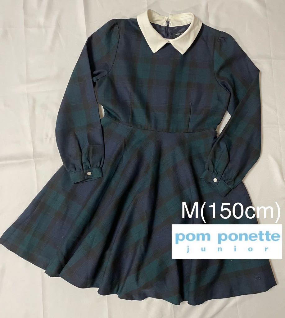 - 美品◇ポンポネット◇ 衿付きブラックウォッチ柄ワンピース◇sizeM