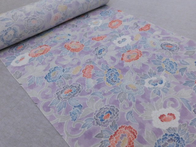 - 小紋 更紗牡丹唐草 一越縮緬 解き洗い品 リ・オーダー 楽布特選 P16564 t