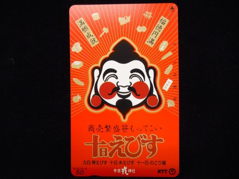 - テレカ 50度 商売繁盛笹もってこい 十日えびす 今宮戎神社 満願成就 福徳円満 イラスト 未使用 T-0124