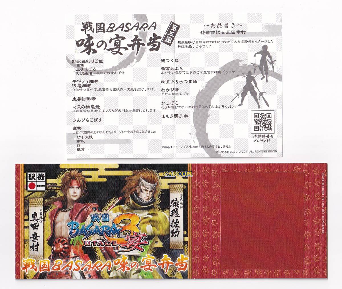 - ◆NRE◆戦国BASARA3 味の宴記念弁当◆駅弁掛け紙お品書き付き◆真田幸村・猿飛佐助