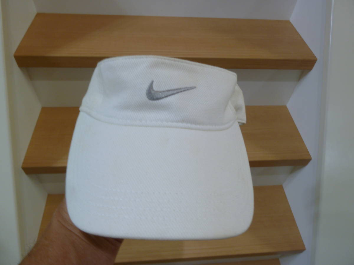 > 訳アリ NIKE ナイキ ホワイト シルバーロゴ DRI-FIT 57-59cm サイズ調整付き バイザー テニス 新品タグ付き