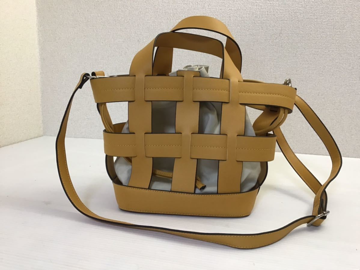 - LAMBMODE/ラムモード バケツ型ハンドバッグ ショルダー 巾着取り外し可 イエロー レディース 合皮 2way カゴバッグ