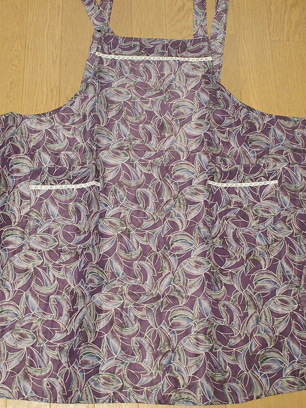 - 【日本製】エプロン 肩ひも 前掛け パープル総柄