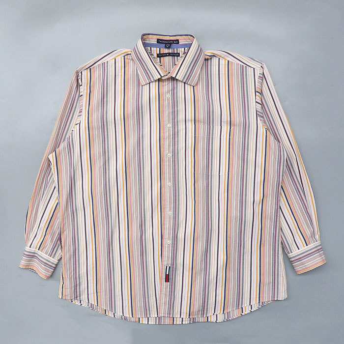 - 古着 TOMMY トミーヒルフィガー ストライプシャツ 長袖 マルチカラー サイズ表記:XL gd76635